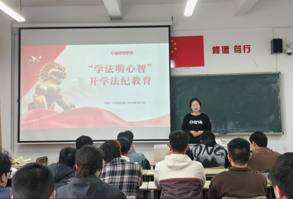 为进一步增强学院师生的法治观念和纪律意识,营造安全、文明、和谐的校园环境,宁德师范学院机电工程学院于3月上旬组织开展了“学法明心智”开学法纪教育班会,全体在校学生参加班会。