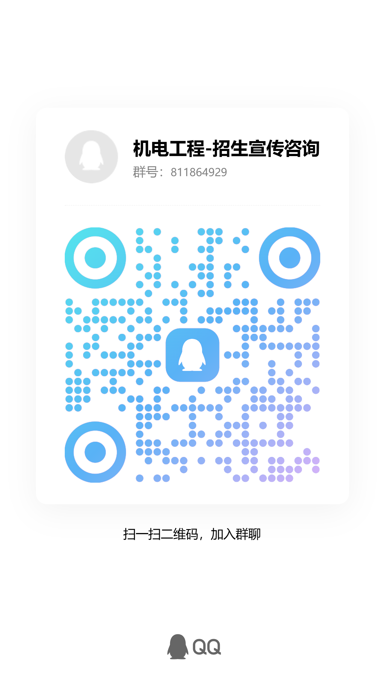 机电工程学院招生宣传咨询群如下,如有任何疑问,请扫码进群,谢谢!